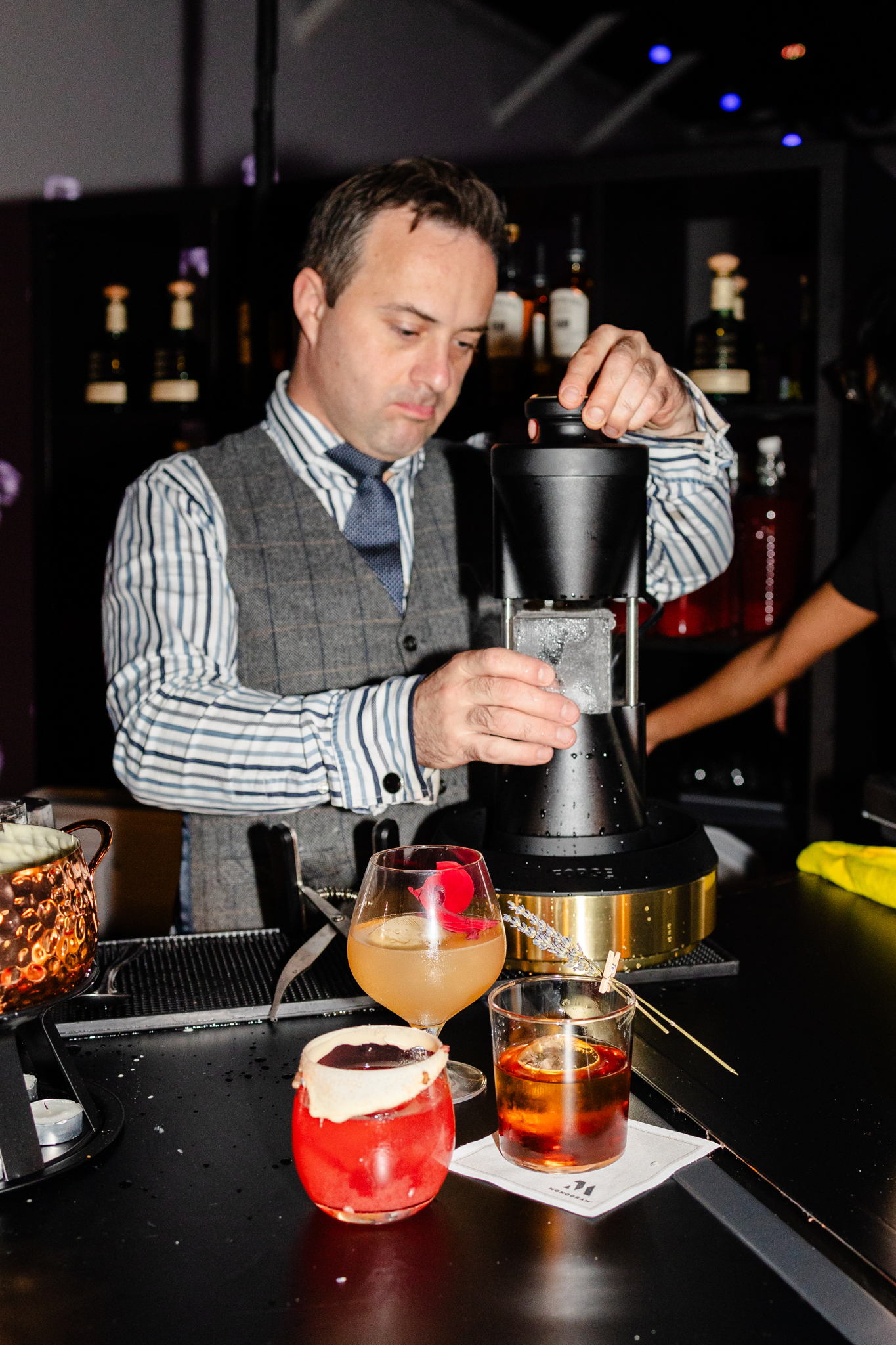 For the launch of the Forge Heated Ice Press, Monogram partnered with internationally renowned mixologist Marian Beke, whose Gibson Bar was named #6 on the World’s 50 Best Bars list. Marian developed two custom cocktails and one mocktail perfectly suited for the beautifully crafted Forge spherical ice.